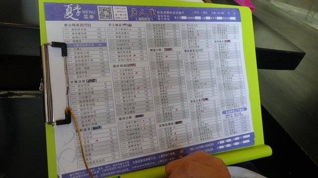 坐下后递上菜单,自己勾选想吃的菜品。