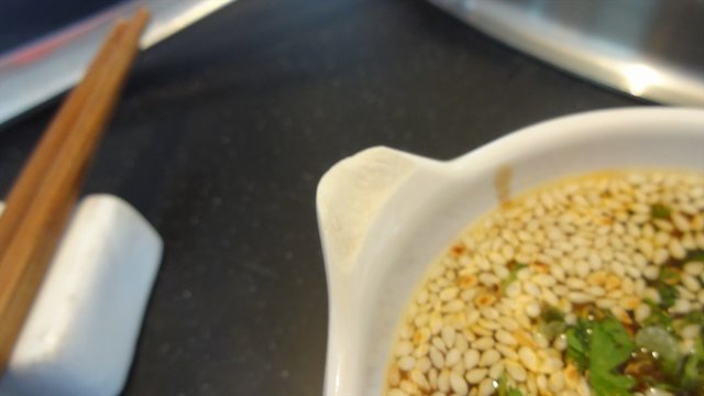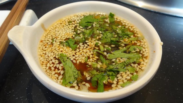 油碟是自助的,各类调料还算齐全。但花生末、芝麻、香油没有多少香味,影响了味道。