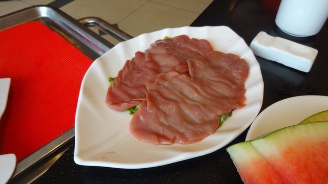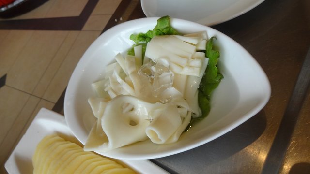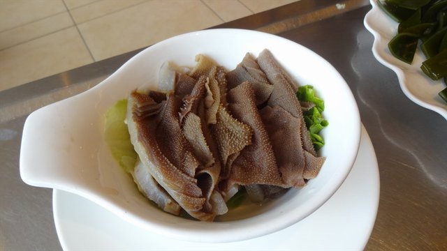 作为火锅必备的菜品,这家店的鸭肠相当失败,下锅一烫立马就变的极其袖珍,而不是卷曲收缩。吃在嘴里完全不用嚼,谈不上爽脆的口感。