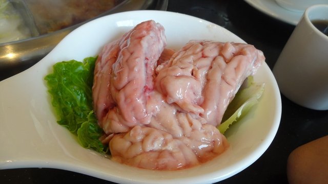应该是冰冻的,不太新鲜。配上失败的锅底,点这个纯属补补自己的猪脑。