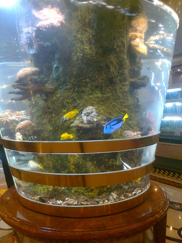 真的是像他们的名字一样,环境真心是奢华霸气呀!欧式家具金壁辉煌,多少少女的皇宫梦来着。大堂里面的家具就是那种很精致的,中央还有一个圆形的鱼缸,鱼虽然没几条,但是都是那种色彩极度鲜艳的,感觉都是名贵的品种;然后用餐的大厅靠窗的地方放着一架三角钢琴,聘请专人在固定时间演奏,吃饭氛围顿时好了很多,看来店家在装修上很花心思的。接下来说说菜式哦!