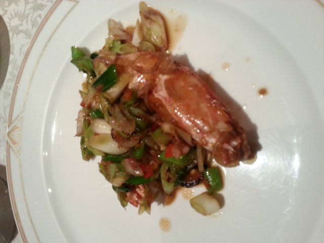 这是他们家的特色,200元一只哦,一人一只,点了4只,装在一个很大的盘子里面,但是味道有点偏咸了,明虾个头很大呢,而且还给刀和叉,让你可以切开来分几段吃呢~