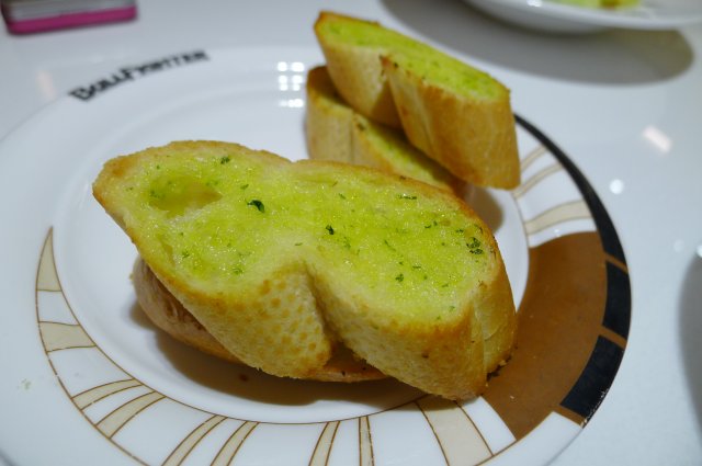 @香蒜面包,外面一层烤的很脆,里面是那种软软的,不过香蒜味不算很重,挺好吃的