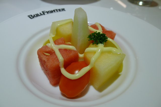 @水果色拉,蛮少的,就两块小西瓜,杨桃,小番茄什么的,上面的色拉酱不是我喜欢的那种,应该要蔬菜色拉的诺,不过这个是畅吃的,后来我也没有再要