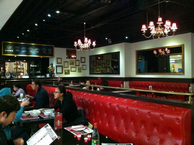 他家的环境也是吸引我的原因之一。红与黑的大气色调搭配,庄重而非装B的家具陈列。服务算是不错,主动领位、点菜时会提供建议,只是客人多了以后会忙不过来,要杯白水不催个三四次可上不来。