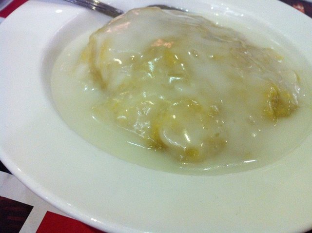 榴莲饭。和期待的榴莲分量还是差了些。头回吃,跟想象的无异,榴莲果肉、椰浆、糯米,甜甜的。原本这三样主料都是我的大爱,可惜搭配在一起并没有相互加分,所以尝过了也就可以了,以后不会再吃。