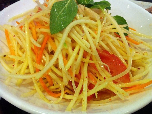 木瓜沙拉。木瓜好老哟……不过调配的味道总算是爽口,意料中的酸甜清爽,透着微辣。