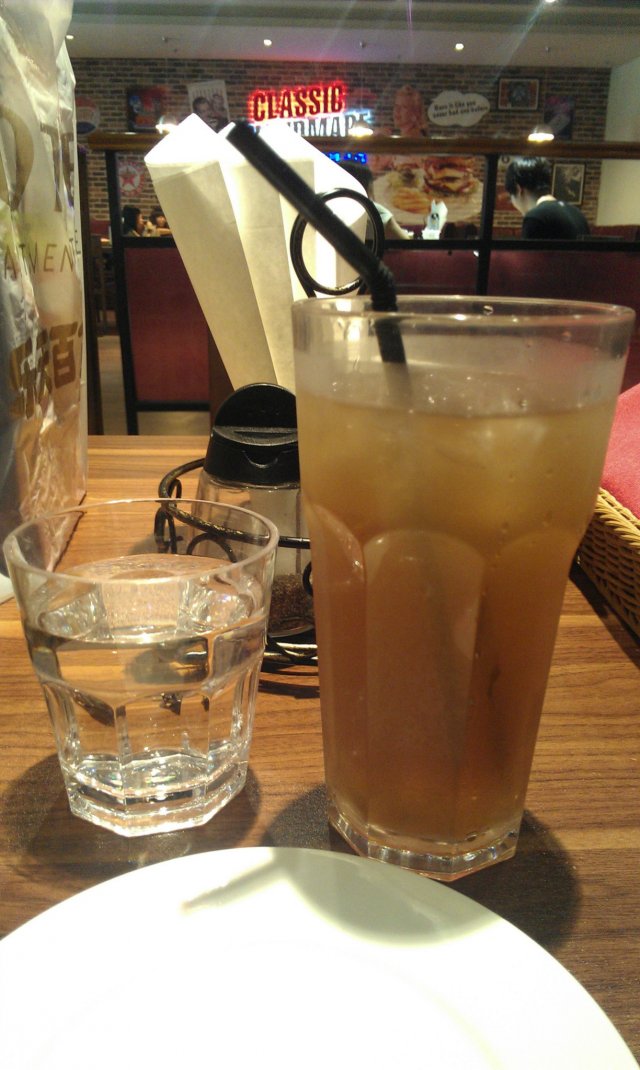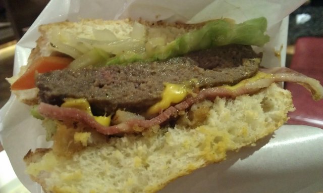 火烤蔬菜培根牛肉堡,65米 培根、牛肉饼、芝士片、红黄灯笼椒、西葫芦、洋葱被一层层的叠在一起,牛肉饼特别有嚼劲,肉质结实,咬下去又很多汁,火候掌握的刚好,吃过这个,皇堡巨无霸都是浮云!搭配的粗薯也很香脆好吃哦,而且感觉这家的番茄酱稍甜一些。另外现在有活动,点汉堡送续杯饮料哦,柠檬茶君~
