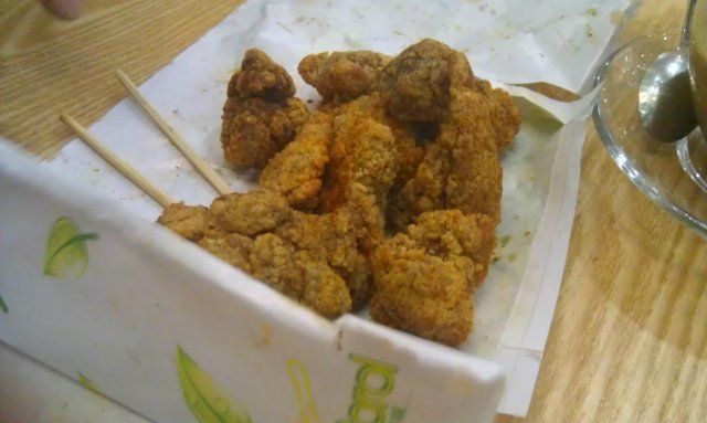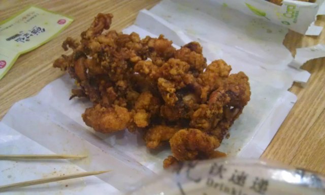 像咸酥鸡这个和别家的鸡米花不一样呀 个儿很大 腌料很不同 不柴呀 超鲜嫩一咬还爆浆的 很好吃 很推荐 也不咋咸