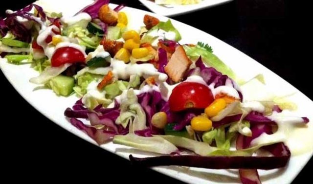 蔬菜沙拉:是西红柿粒,洋葱粒,各种蔬菜粒的混合物,小小的长窄盘。味道没什么特别,就是蔬菜味道。。