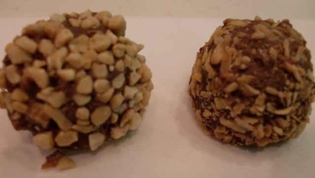 选了两颗松露巧克力,椰丝味和蜜糖杏仁味的。