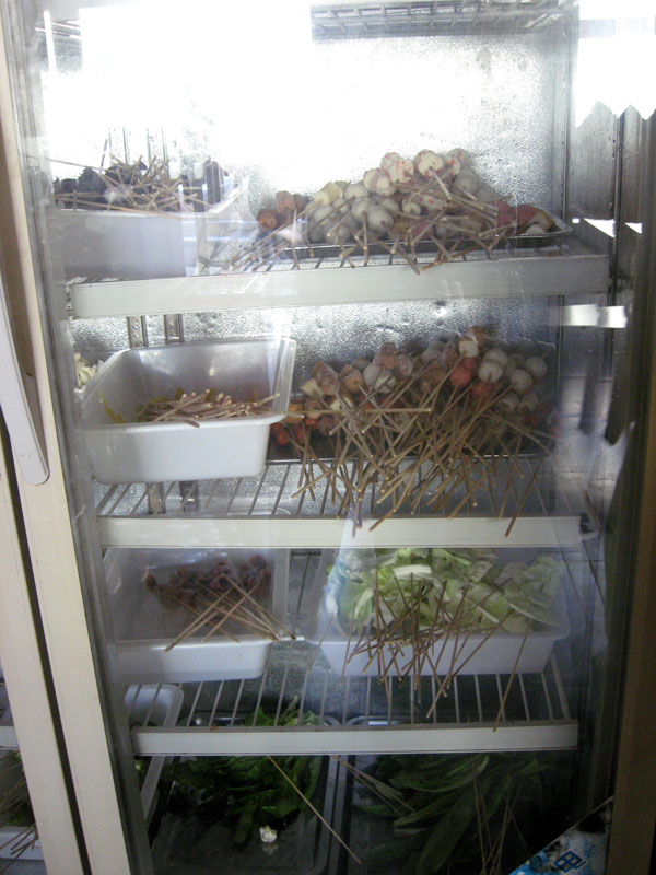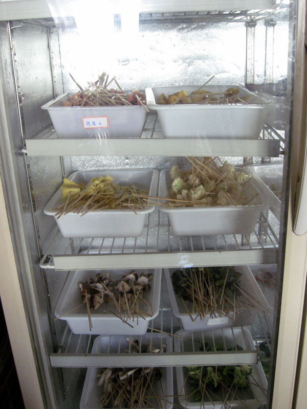 自取的串串,种类还挺多,有荤有素,价格也不贵。串串香还有论份的,是自取那没有的,5-15元不等,价格也不算贵。串串在鸳鸯锅里煮着,辣锅那边味道很好,煮了都完全不用小料就很好吃了。