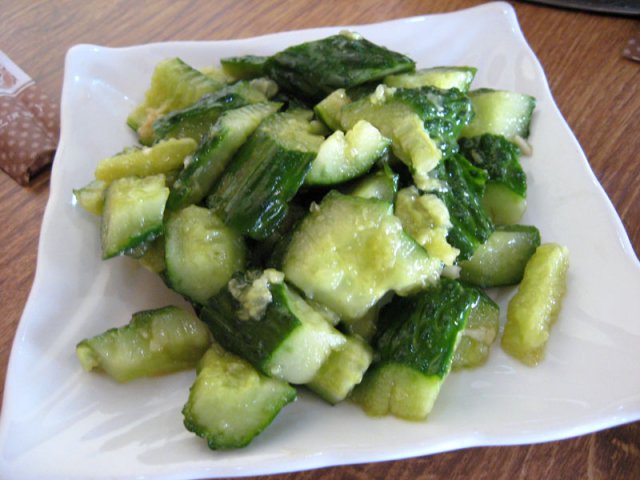 凉菜花生和拍黄瓜,味道都不错,闺蜜喜欢吃那花生,说很香很脆,我没怎么吃。谁让烤兔子的吸引力那么大呢,我光顾着吃它了。