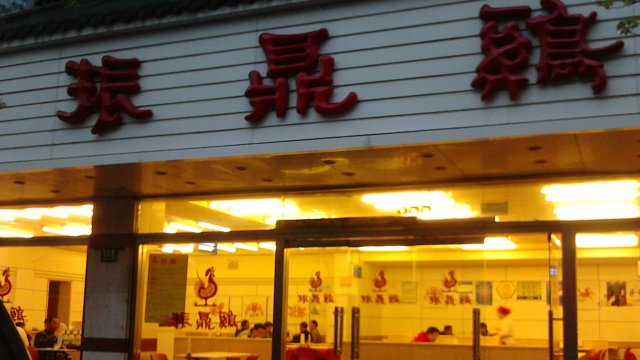 今天下班沿着南车站路走,路过振鼎鸡,就想买只鸡腿,打包给家里加个菜。本来还想买2个鸡胗的(鸡胗2.80元一个),由于是晚上了,早就卖完了。现在这里的鸡不便宜呀!外卖是29.80元一斤,堂吃是30.80元一斤。打包是直接到切配鸡的窗口,当场切鸡称分量得出价格,服务员会给一纸条,到收银条付钱(不能刷信用卡),然后再去切配鸡的窗口领打包好的鸡。今天一只鸡腿称下来20元多一点。我觉得振鼎鸡的鸡,鸡皮细腻,鸡肉嫩。有时候鸡骨头上还带着点血红色。配上他家的秘制酱油和香菜,生姜末,入口那个鲜美呀!以前还吃过鸡汤面,记得好像只要5元。现在什么都涨价了,鸡汤面涨到了6元3角一碗。鸡汤面的汤很鲜,面条筋斗。面条上有几颗青菜,还摆着两三片鸡肝。振鼎鸡的鸡粥也卖的很好的,现在要3元一碗了。
