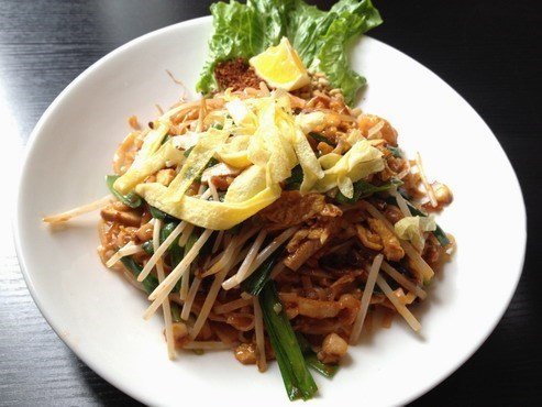 金边粉28元上午套餐的主打产品。也是店里的招牌菜!酸酸辣辣的口感是泰国菜的特色,金边粉独特的韧性(比西安凉皮人性高),宽度在河粉和粉丝之间。料也用得很足:鱿鱼、鸡蛋、虾仁、豆腐干绿豆芽、韭菜,所以非常有特色强烈推荐!