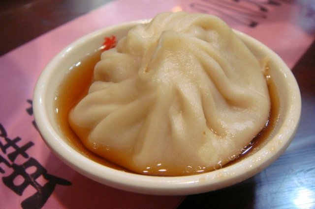 苏州汤包(¥7/6个),味道依旧,就是个头比以前小了一点,汤汁甜甜的,汤包厚厚的皮也蛮好吃的,里面肉肉也很大,爽啊