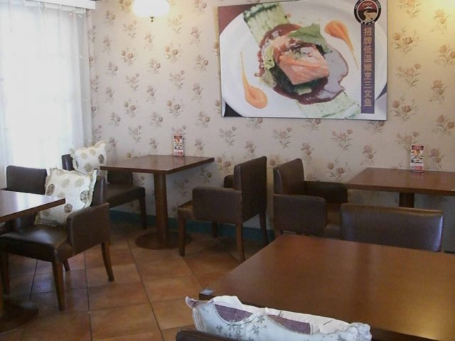 店内满墙的碎花很有田园风格,周末下午过去客人不是很多,1F静静的赶脚挺温馨,就没上二楼,旁边是漫咖啡,人气貌似要更旺一些,至少那边临窗都坐满了。