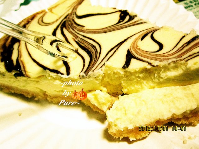 团购的乳酪蛋糕,对于cheese的蛋糕我有特殊的偏爱,这款性价比超级高。虽然知道39元的蛋糕量不会太大,但是拿到一看还是相当满意啊。特别值得一提的是,这个蛋糕盒子外面是有塑料纸塑封的哦。店家很贴心,配有四人的餐具。盒子打开一看,乳酪味道很浓郁,上面是漂亮的大理石纹路,纹路清晰而文艺。乳酪香味立马扑鼻而来。一个蛋糕切成八分,本想只吃一块解馋,结果是欲罢不能啊。蛋糕底是很脆却甜而不腻的饼干底,松松脆脆,让你回味到最后一口。