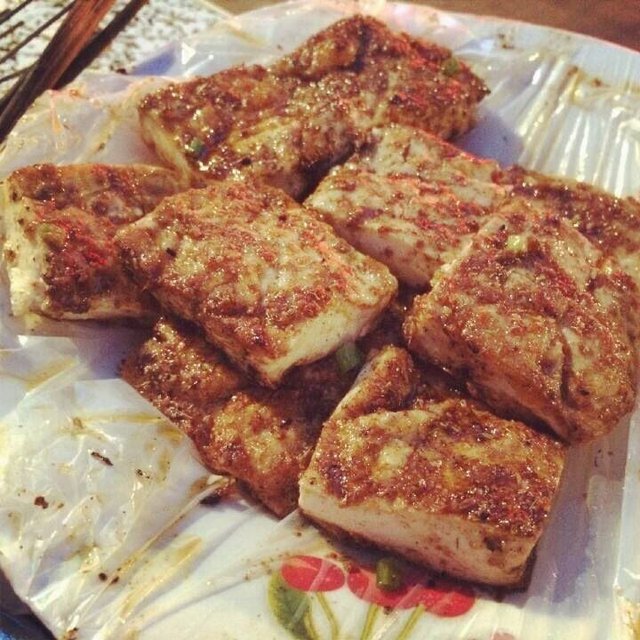 点了干子,他家是白色那种,上面放了很多的辣椒面孜然粉,虽然是干子但是蛮嫩,口感比豆腐要稍稍老点。干子挺入味的,表面有点焦硬里面很柔软蛮好吃。