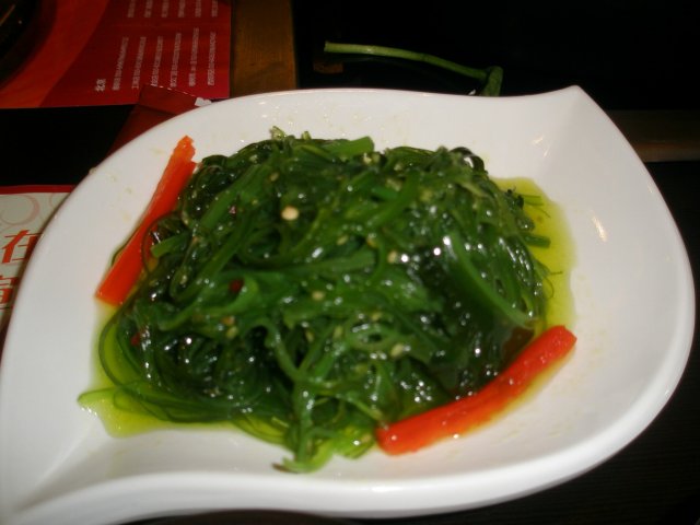 坐定点单,两个冷菜味道还行,海藻和鱼皮,无功无过!