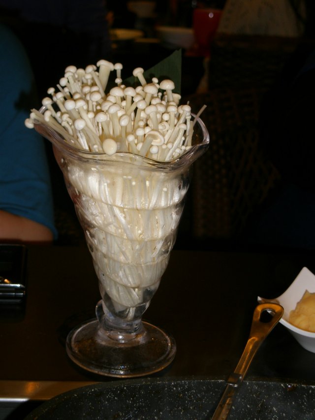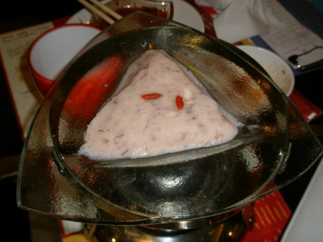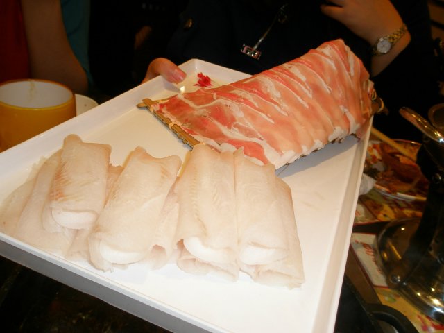 鱼羊双拼,我不吃羊肉,所以大家迁就我又单独点了两个小锅,就是现在流行的那种小锅子,五色锅底中选了养生和菌菇,都蛮不错的,据说羊肉很嫩,我是很喜欢那个鱼,切的那么薄居然可以不散,奇迹啊!鱼羊美味视为鲜啊!不错不错!