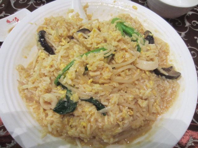 还点了一个海鲜烩饭。不知道是不是真的像西班牙海鲜烩饭的做法,都是从生米炒出来的。上来你的时候,米粒湿路路的,裹着蛋液,感觉米粒有海鲜的鲜味。 配了乌贼,青菜,虾子。 饭的量也很大,2个人都吃不了了。
