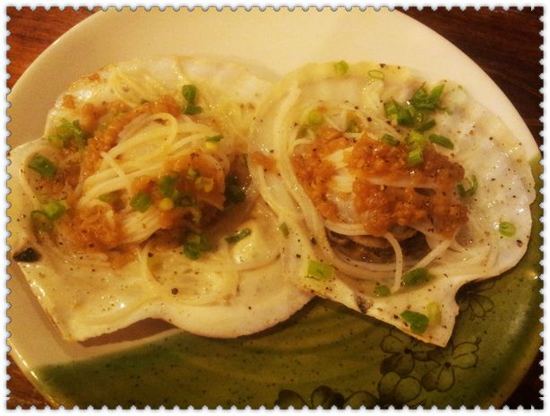 铁板贝类~ 选了铁板蒜蓉扇贝,一共2只,个头还不算小,一口吃下去,扇贝的肉香和调味的蒜香交织一起,终于让今天的味蕾有了小满足感,呵呵~~