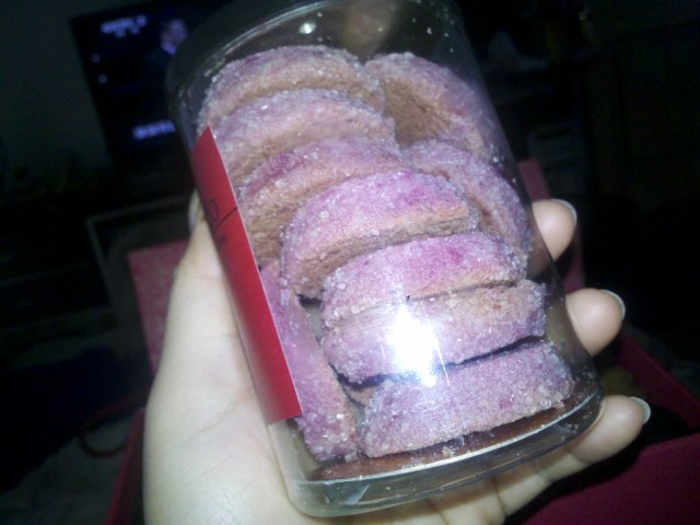 天气渐渐的热了,人也开始懒了没有自己烘培做饼干的欲望,但是嘴馋没办法只能出去买,看到宜芝多有很多饼干,一时没忍住买了一款颜色和味道都比较喜欢的【紫薯饼干】,紫色的饼干让人有种很梦幻的感觉,他们家的饼干做的十分的松脆,而且黄油味非常的浓重,这点是家里做不出来的,虽然饼干做的不是很甜但是在饼干的外圈裹了一层粗糖吃上去很有质感。