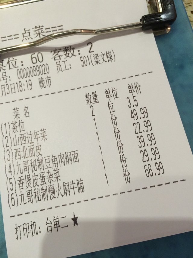 2个人就这样点了6个菜,而且份量都是蛮大份的,完全不是之前印象中山西九毛九那种小气的传闻印象,最后吃不完的菜全部打包