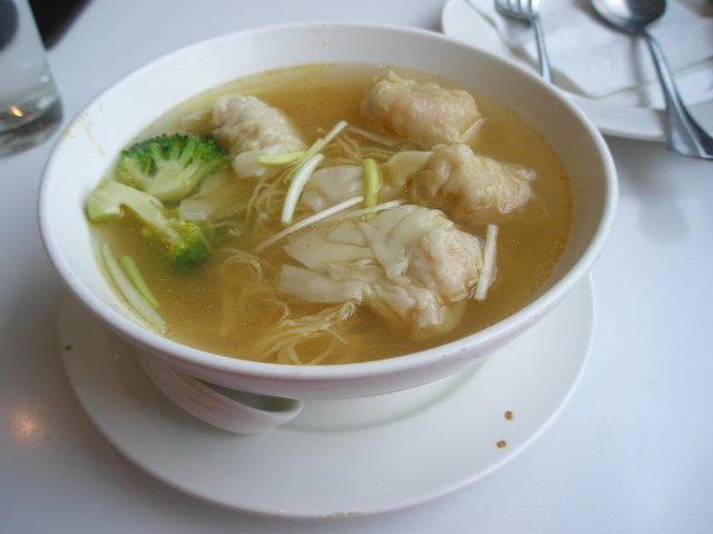鲜虾云吞面里面有四个鲜虾云吞,云吞里面虾仁非常的有弹性,质感很好,而且个头硕大无比的两个,是的云吞显得相当的饱满,入口鲜美。是最爱之一。