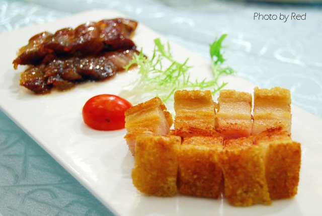 冷菜点了烧鸭,三选一果断选了这道,烧鸭皮脆肉嫩,一点都不油腻,一整只的量,十八元绝对超值。擂椒牛盏,牛肉切成薄片伴着辣椒,麻辣鲜香。时蔬拌双笋,有辣菜所以点了这道清淡的,爽口解辣。烧味双拼,叉烧和烧肉,量稍微少了点,适合三四人点,味道还是做的挺不错的,比起在前段时间在深圳吃的好太多了。
