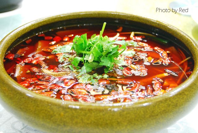 热菜点的几乎都是以川菜为主,一开始点的毛血旺,血,黄喉,黄鳝,豆芽等等都是我喜欢的,麻辣鲜香超级和我胃口,于是后面又加点了水煮牛肉和虾,用的材料都很新鲜,特别是虾,肉质Q弹,味道鲜美。河虾蒸秘制鲈鱼,河虾和鲈鱼放在一起蒸,绝对是鲜到掉眉毛。菌菇焗土鸡,量不大,鸡肉很紧实,越嚼越香,菌菇结合了鸡的香味也变得鲜美无比。