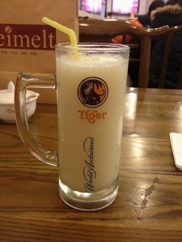 自制豆浆5元。热的冬天喝比较温暖舒心。