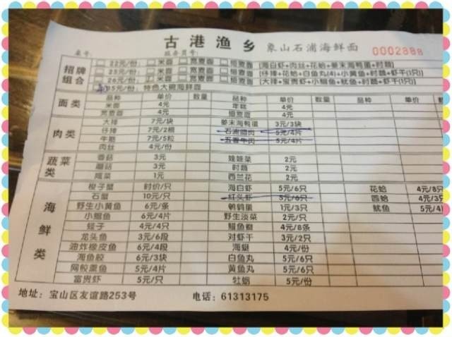 实惠的海鲜面 purerara等級42013-08-213 瀏覽 關注 去宝山吃的一家店。象山海鲜非常有名。他们家比较出名的是海鲜面。35元一份是特色大碗海鲜面。给你张单子,你可以勾你自己想要吃的料。价格也是丰检随意。 海鲜面上来的时候吓了一条啊。非常大的一碗。2个女孩子完全可以共享一碗。里面的料也很多。鱼,虾,各种贝壳,丸子好多好多。当然还有搭配蔬菜。汤头非常鲜美。是用海鲜熬出来的那种。 面条的量太大了。。。实在是吃不完。 而且那里的海鲜都是展示在那里让你挑选的。一看就是吃海鲜的海鲜城。也可以点小菜。 服务么还可以。友谊路这里算是宝山热闹的地方了。以上食評乃用戶個人意見 , 並不代表OpenRice之觀點。讚好分享实惠的海鲜面 古港渔乡 https://s.openrice.com/KtbT100fDW600檢舉 張貼 評分4味道3環境3服務3衛生3抵食人均消費¥35 (午餐)
