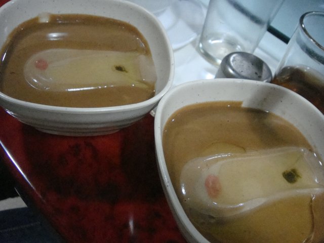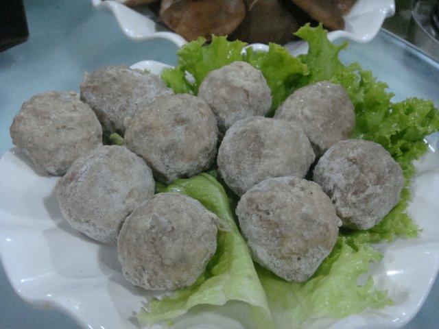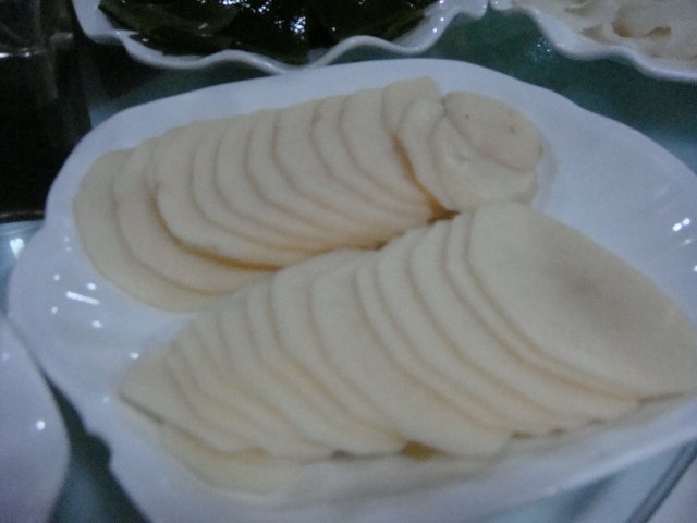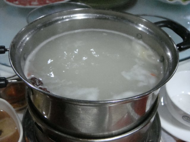 店家每桌送了羊肉,我们又点了牛肉丸、土豆片、香菇等菜