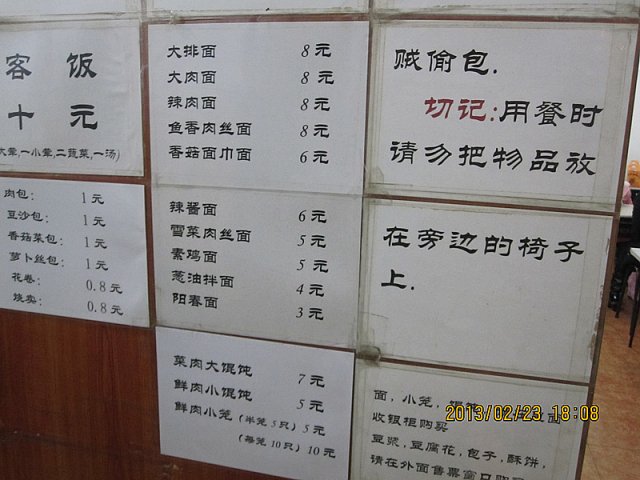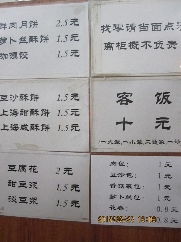 进门的地方贴着大字报一般的价格表。都很价廉物美。西宫这里有学校。很多学生和居民都来吃。小馄饨要5元。也不算便宜了吧。辣肉面都是8元。还行。有客饭,豆浆,包子供应。算是平民的小店。来吃吃早饭蛮好的。不过肯定人很多啦!鲜肉月饼2块5,算是平价的。