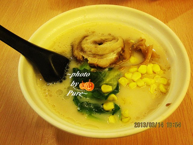 选的是B套餐:【拉面】半份:小碗上来,其实还是量很足的。豚骨肉,青菜,笋干,玉米。pinko说很咸。这个我就纳闷了。为什么2款面条不能综合一下?