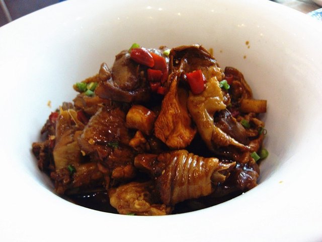 向塘烧土鸡,据说这道菜在南昌的普及程度和热干面在武汉的程度相当,带皮的鸡肉切成小块用各种调味酱料烧制,鸡肉比较瘦,有嚼劲儿,酱香微辣,挺入味的,但并什么突出或特别之处,没领会到为什么会在江西风靡。