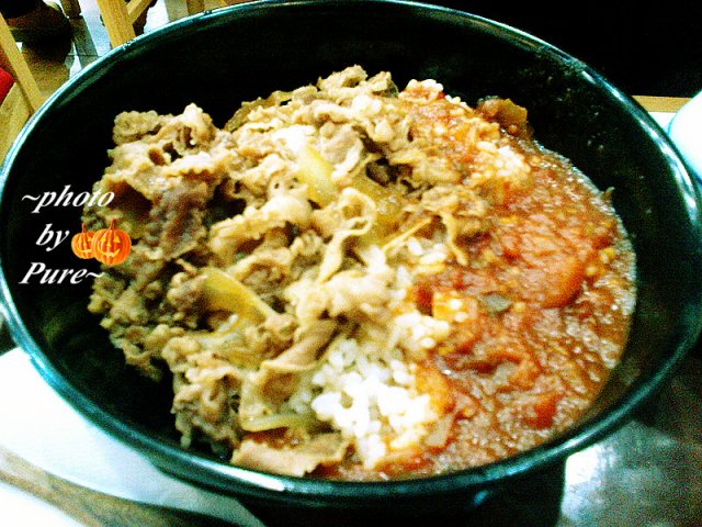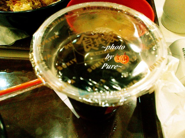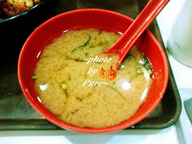 这里牛肉饭是推荐的。河马点的是番茄牛肉饭,我还暗暗想这个饭肯定很难吃,可是上来很大一碗呢(其实是中碗的份)番茄酸酸的,让人大开胃口,还有牛肉也挺多的啊,番茄汁牛肉汁混在饭里面相当好吃,比较搞笑的是,饭里面搭配的木勺子太迷你了,怎么那么有意思啊,我说,河马这个干吗要给你个那么小的小勺子,以为你是小毛头啊。河马说,大概为了让饭看起来更大一些吧。他点了蒸蛋和味增汤,6元