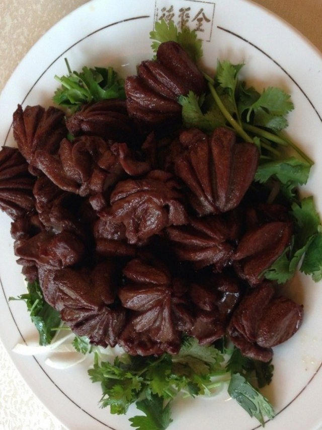 5、火燎鸭心:店家的招牌,鸭心很大个,改刀成花苞状,挺好看,份量也挺多的,吃着很有嚼头,咯吱咯支,比较好吃,外皮有焦香味儿。