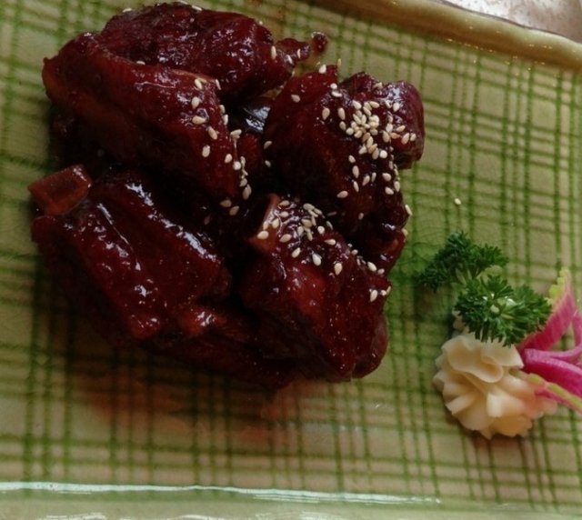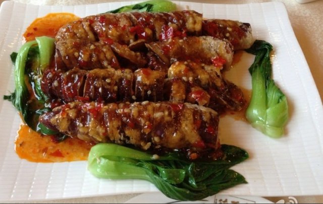 7、酱爆鸭肉:酱香味十足,鸭子肉特别的嫩、滑,卖相也很有食欲,如果吃米饭的话会很下饭的菜。