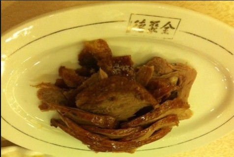1、烤鸭:全聚德卖的的是传统吊炉的烤鸭,看到主食厨房里一排排的烤鸭,那架势很震惊,这一天得卖出去多少呀。等待烤鸭大师傅一片片地收拾刚出炉的鸭子,手法娴熟,干练,很快就出盘了,外皮很酥,油亮,很好看,入口即化,小料没有什么特别与创意,比较传统的吃法。