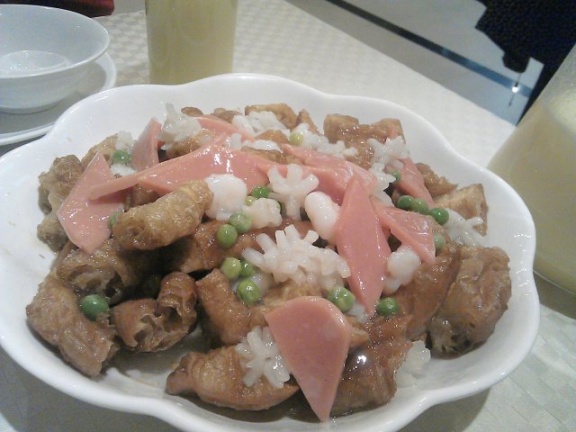 上了蛮大一盘~老油条也蛮多额。里面还有青豆和鱿鱼和方肉~