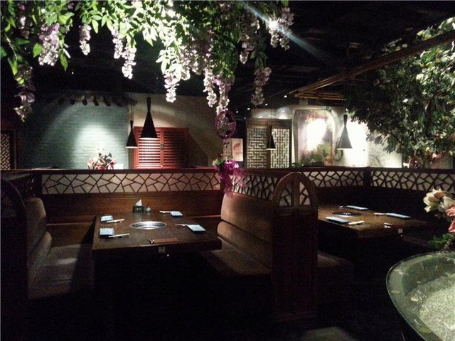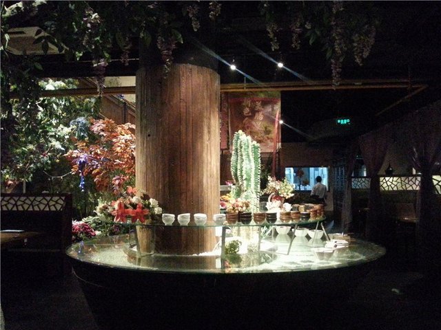 餐厅有两层,一层和地下一层。一进到店里给人很温馨的感觉,装饰的树木,绿植很多,满眼的青翠绿意,灯光柔和不刺眼,没有一般餐厅的吵杂,很清静,坐在大树下吃火锅别有一番风情。