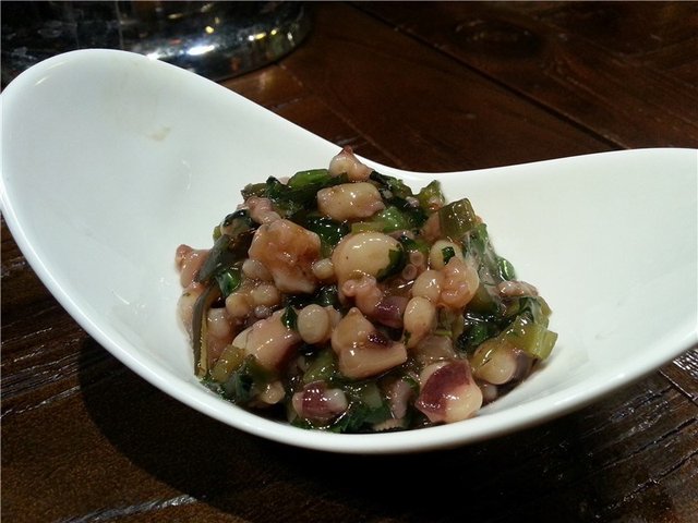很喜欢的一道小吃,章鱼切成了很小的块,这样更容易入味,芥末的味道很浓郁,吃着辛辣适口,章鱼很Q弹,就是稍有些咸。