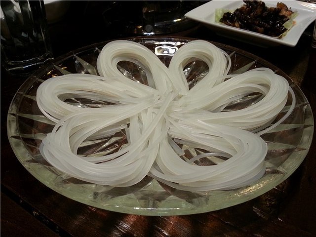 这是个卖萌的社会,普通的水晶粉摆成了花朵的形状,看着还是蛮吸引人的。粉丝很容易熟,吃着很劲道,而且煮熟的粉丝是透明的,很漂亮。