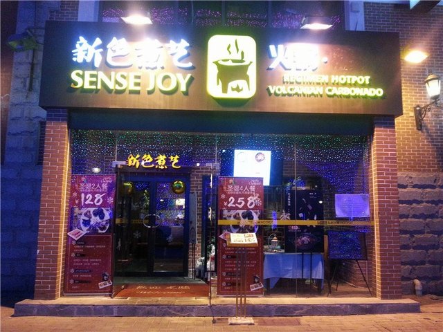 新色煮艺术私房火锅店位于蓝色港湾国际商区亮马食街东段的路上,外面霓虹闪烁,灯光闪闪的很有节日氛围,貌似现在的圣诞节越来越火了,有超过传统节日的势头。新色煮艺门面简洁,也推出了圣诞套餐,价格还是蛮实惠的。