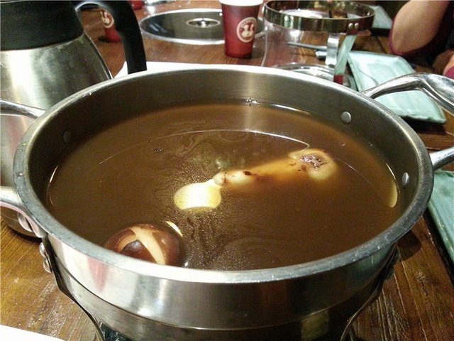店里的招牌锅底,很滋补的一道锅底,里面的松茸是出了名的鲜美,还配有云南野生黑牛肝菌,竹荪,仙人头菌等一起隔水煲制而成的,汤汁味道浓厚,鲜香可口。吃火锅前先喝上一小碗的菌汤,温暖适口。