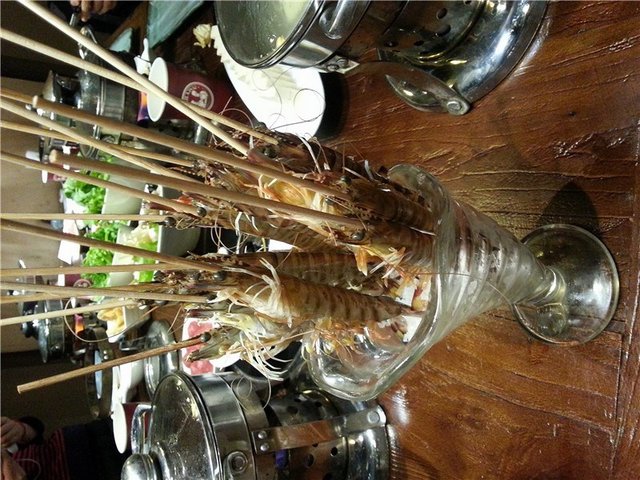 这个价位觉得还是挺超值的,鲜很新鲜,用竹签穿着,虾还是活的,个头也很大。煮熟的虾颜色红颜,很容易剥皮,虾肉紧致Q弹,味道鲜美。