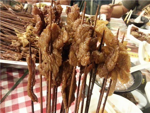 这里的嫩牛肉是最超值的,5毛一串,牛肉嫩滑入味,吃着很有嚼劲,香辣适口,百吃不厌。